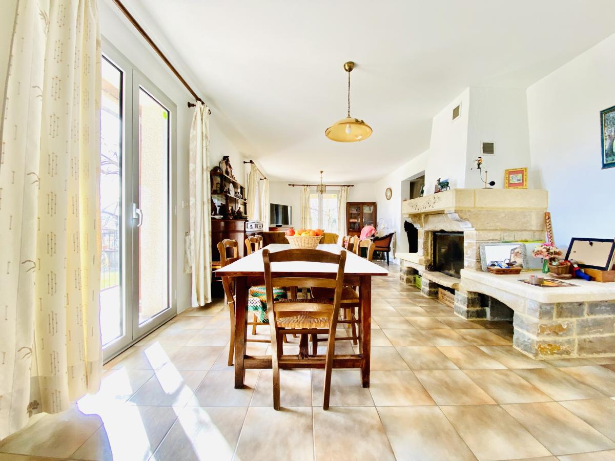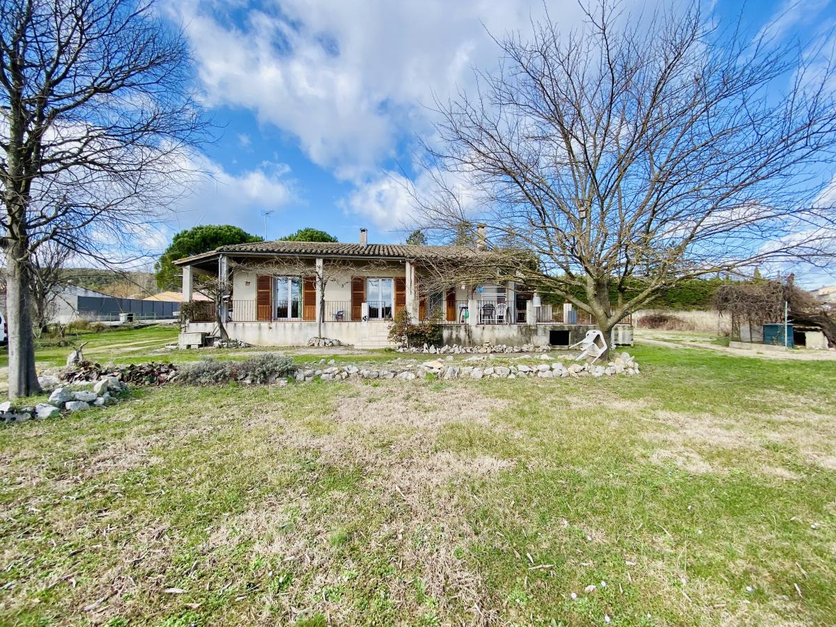 La maison développe une surface de 104 m² habitables et se compose d’une entrée, d’un séjour de 33 m² avec cheminée exposée SUD et prolongée d'une grande terrasse avec vue sur la garrigue, d’une cuisine indépendante de 13m² pouvant être ouverte sur la pièce à vivre, d’un cellier attenant, d’un coin nuit avec trois chambres de 11 m² en moyenne, une salle d’eau et un WC Indépendant. Grand garage de 25 m², atelier de 13 m² et autres dépendances.