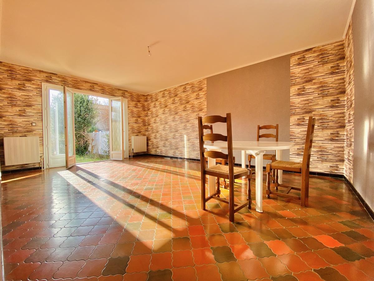 Maison T4 construite dans les années 1975, mitoyenne des deux côtés, dans un lotissement calme proche de toutes les commodités, sur une parcelle de 322m².